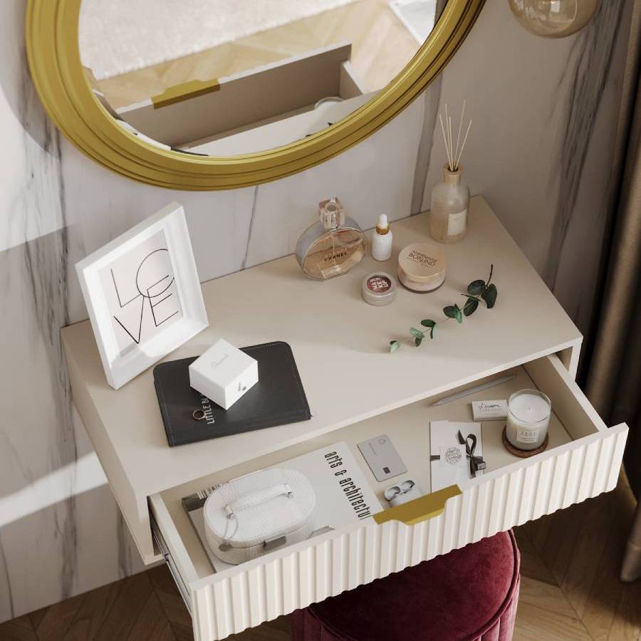 Консоль изготовлена из ЛДСП - стандартной плиты, которая широко используется в производстве мебели. ЛДСП обладает устойчивостью к УФ-излучению и прост в уходе, что делает его идеальным материалом для мебели. Фасады консоли покрыты пленкой ПВХ, которая наносится на МДФ методом горячего прессования. Это обеспечивает долговечность фасадов, даже при интенсивной эксплуатации. Пленка ПВХ становится эластичной при нагревании и может быть натянута на любую фрезеровку фасада, что позволяет создавать уникальные дизайны.