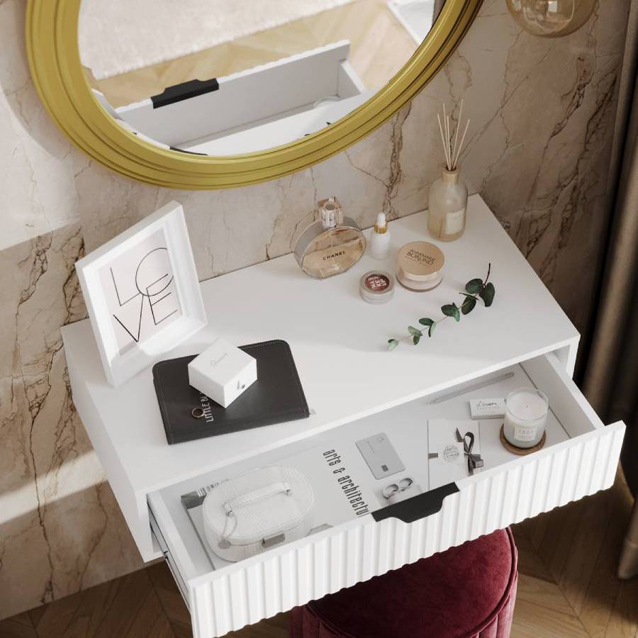 Консоль изготовлена из ЛДСП - стандартной плиты, которая широко используется в производстве мебели. ЛДСП обладает устойчивостью к УФ-излучению и прост в уходе, что делает его идеальным материалом для мебели. Фасады консоли покрыты пленкой ПВХ, которая наносится на МДФ методом горячего прессования. Это обеспечивает долговечность фасадов, даже при интенсивной эксплуатации. Пленка ПВХ становится эластичной при нагревании и может быть натянута на любую фрезеровку фасада, что позволяет создавать уникальные дизайны.
