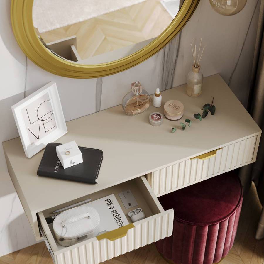 Консоль изготовлена из ЛДСП - стандартной плиты, которая широко используется в производстве мебели. ЛДСП обладает устойчивостью к УФ-излучению и прост в уходе, что делает его идеальным материалом для мебели. Фасады консоли покрыты пленкой ПВХ, которая наносится на МДФ методом горячего прессования. Это обеспечивает долговечность фасадов, даже при интенсивной эксплуатации. Пленка ПВХ становится эластичной при нагревании и может быть натянута на любую фрезеровку фасада, что позволяет создавать уникальные дизайны.