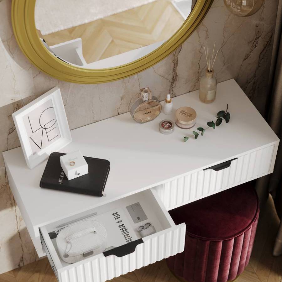 Консоль изготовлена из ЛДСП - стандартной плиты, которая широко используется в производстве мебели. ЛДСП обладает устойчивостью к УФ-излучению и прост в уходе, что делает его идеальным материалом для мебели. Фасады консоли покрыты пленкой ПВХ, которая наносится на МДФ методом горячего прессования. Это обеспечивает долговечность фасадов, даже при интенсивной эксплуатации. Пленка ПВХ становится эластичной при нагревании и может быть натянута на любую фрезеровку фасада, что позволяет создавать уникальные дизайны.