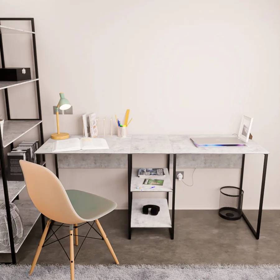 Прочная металлическая конструкция обеспечивает надежность и устойчивость мебели, а столешницы из ЛДСП гарантируют долговечность и простоту в уходе. Особая двухместная конструкция с общей длиной рабочих поверхностей, делает стол идеальным для обустройства кабинета или офиса. Два дополнительных открытых полки предоставляют достаточно места для хранения книг, документов и других необходимых вещей.