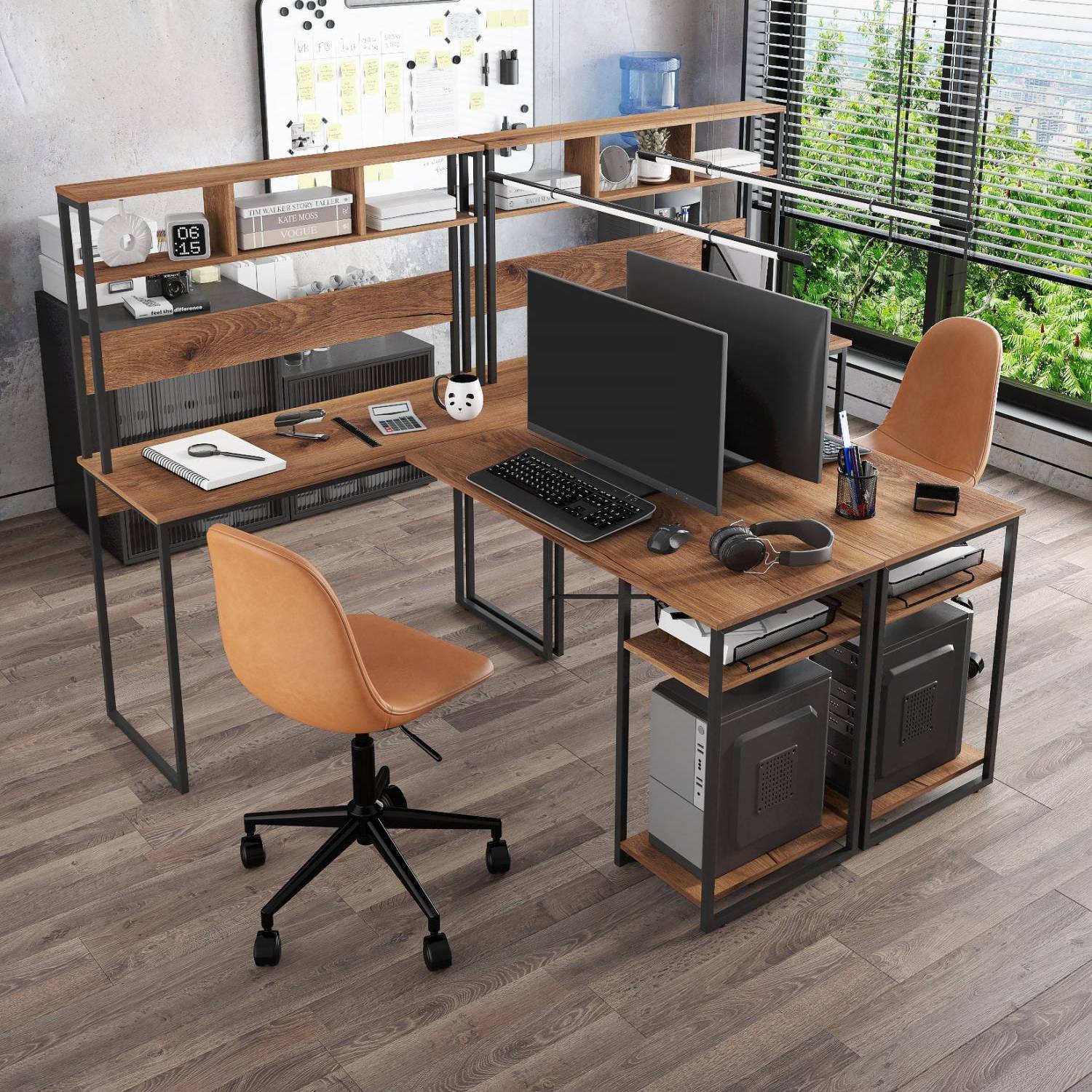 Стол компьютерный угловой лофт Ridberg ALASKA, темный дуб черный
