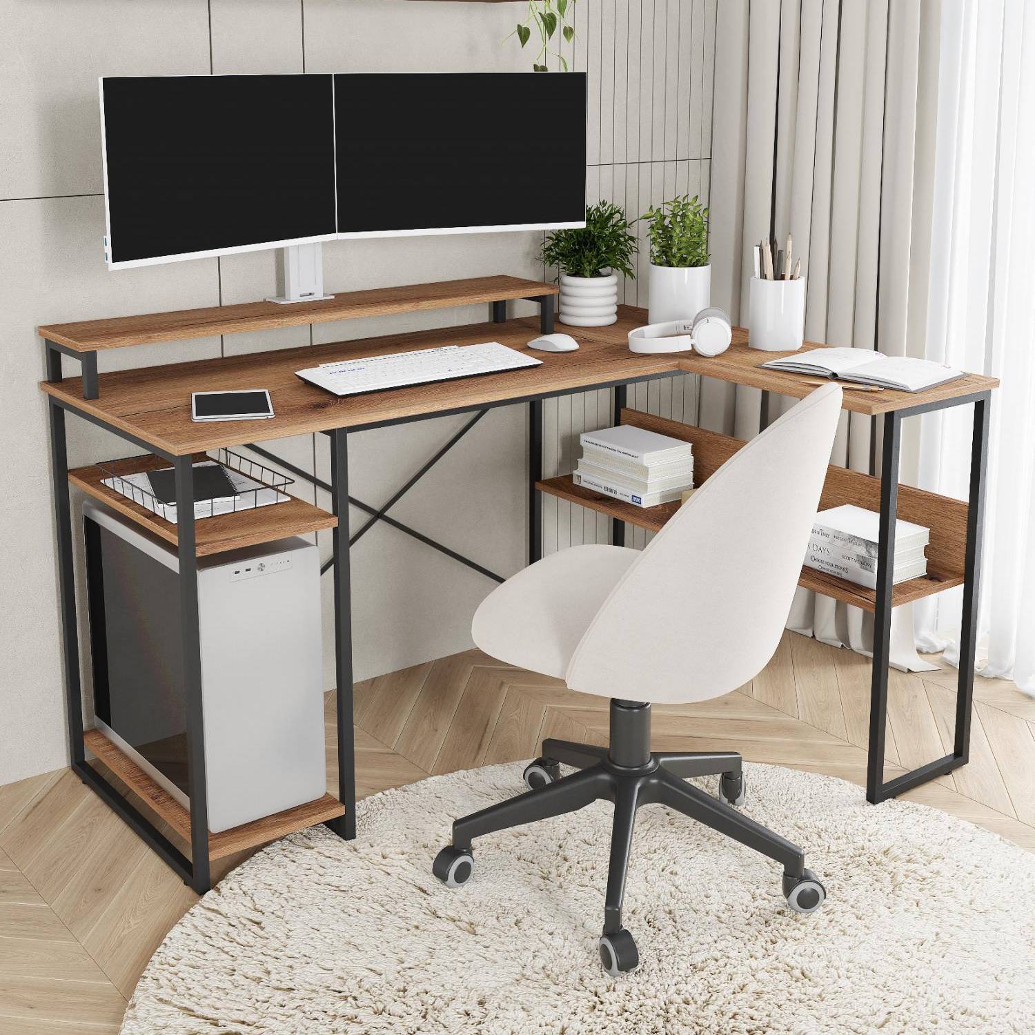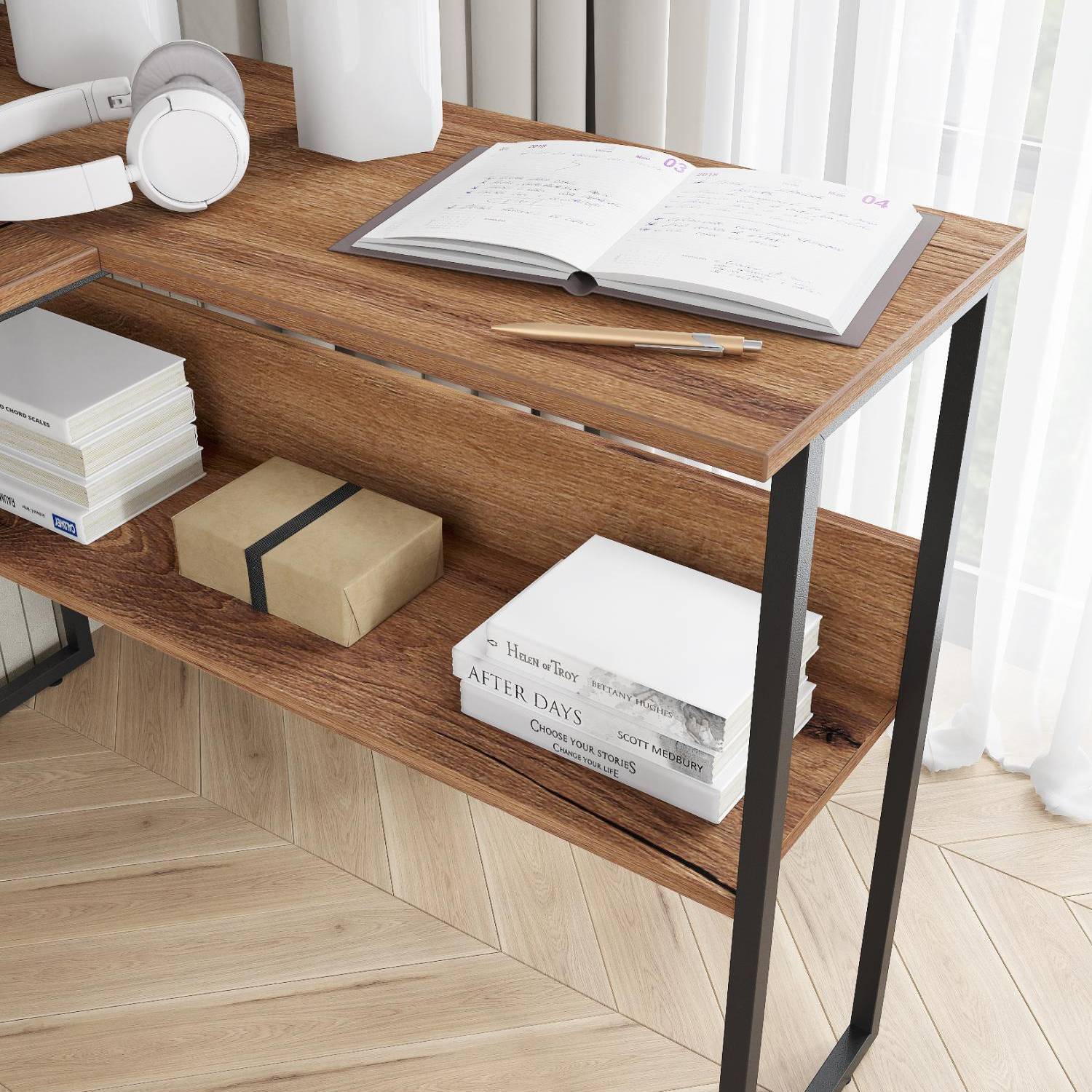Стол компьютерный угловой лофт Ridberg TEXAS, темный дуб черный