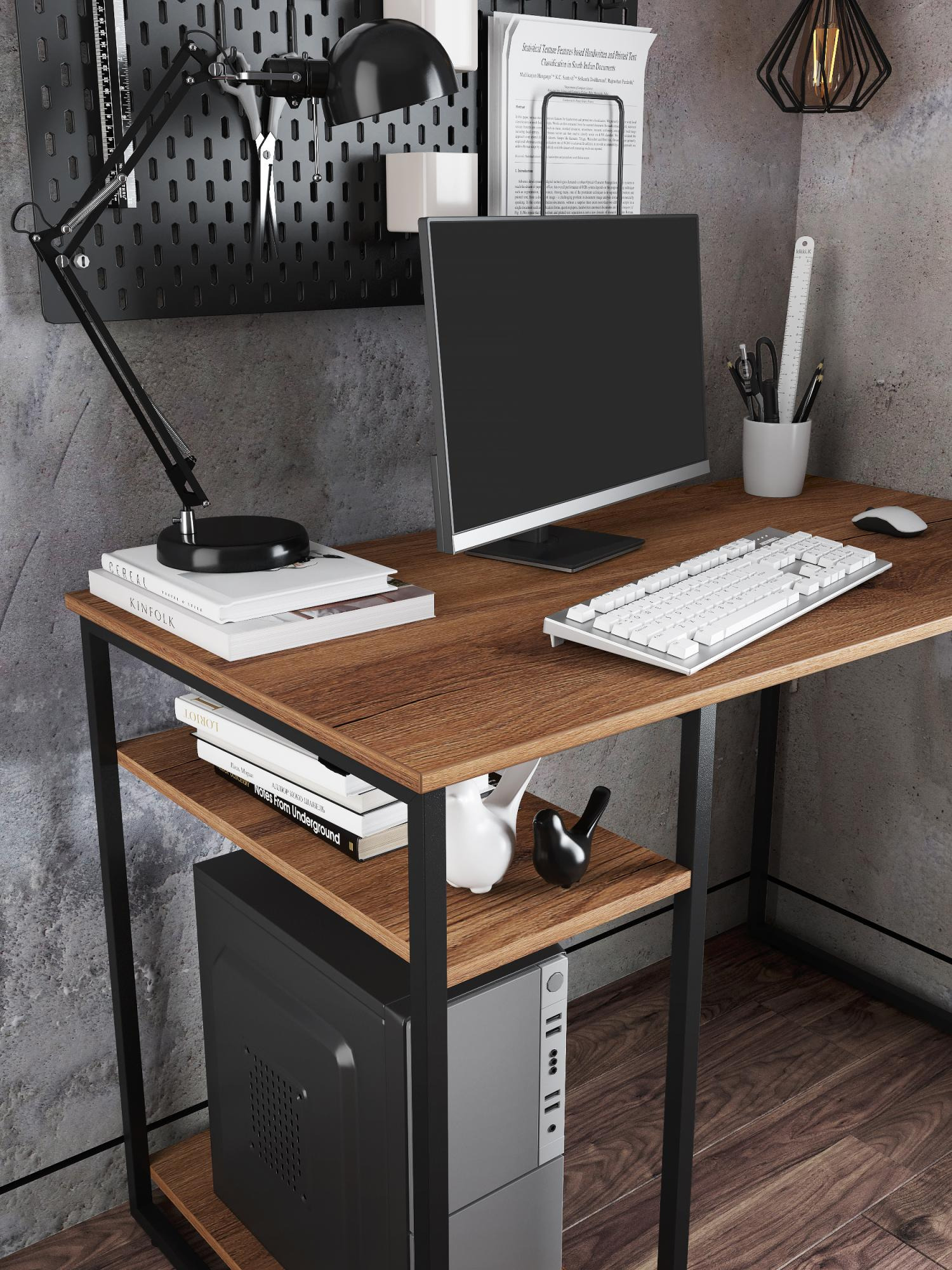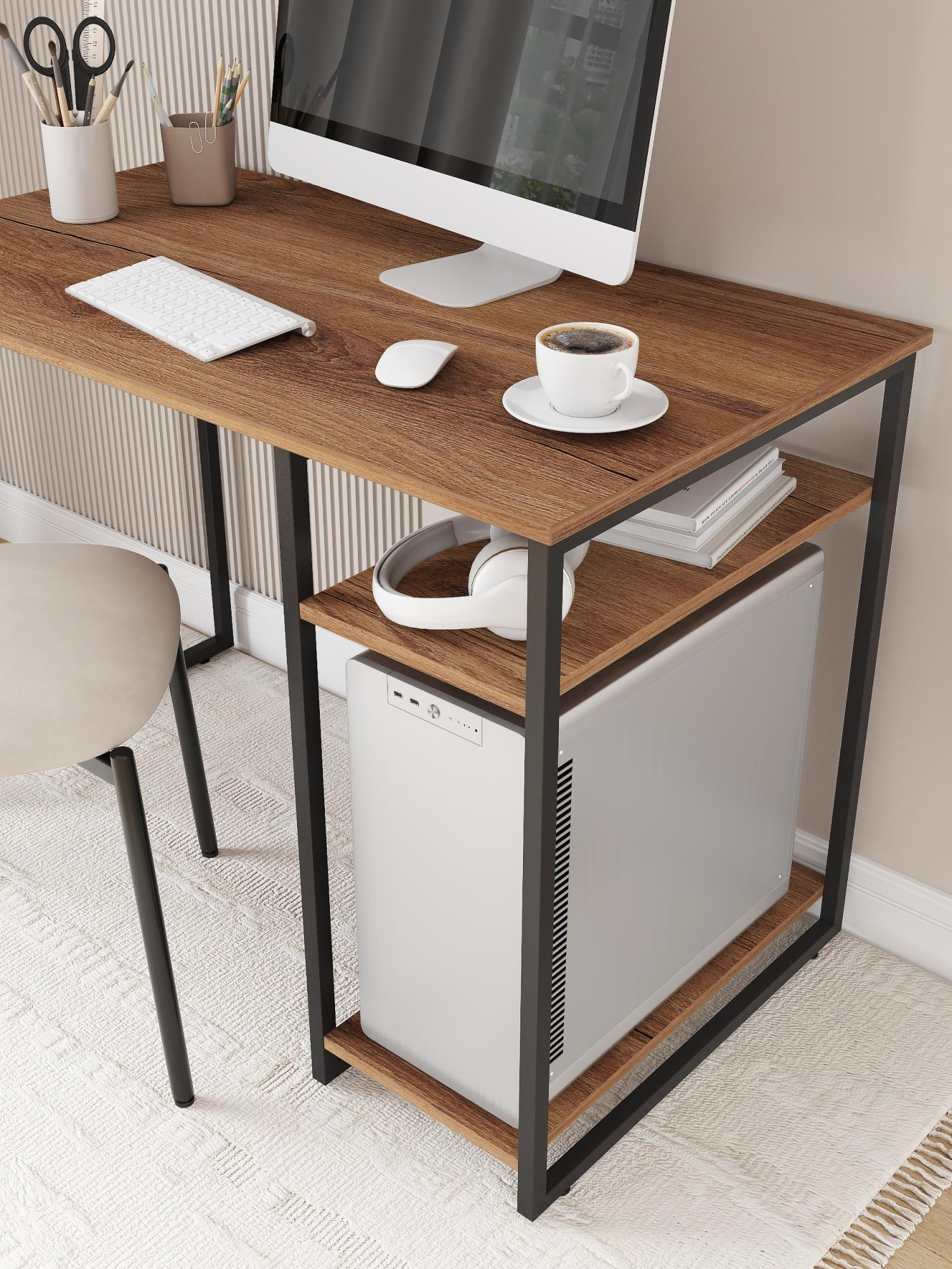 Стол письменный с полкой для ПК Ridberg GILBERT, темный дуб черный