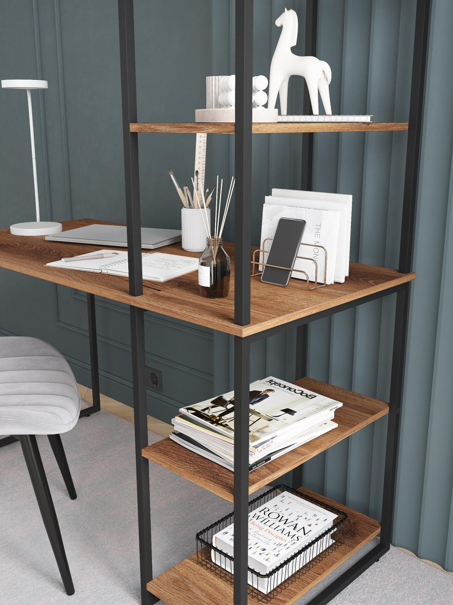 Стол-стеллаж RIDBERG MEMPHIS представляет собой функциональное решение для организации рабочего пространства в современном стиле лофт. Конструкция сочетает в себе письменный стол и систему хранения, что делает её особенно практичной для небольших помещений.