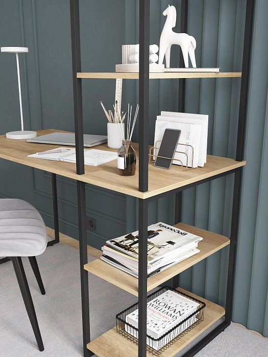 Стол-стеллаж RIDBERG MEMPHIS представляет собой функциональное решение для организации рабочего пространства в современном стиле лофт. Конструкция сочетает в себе письменный стол и систему хранения, что делает её особенно практичной для небольших помещений.