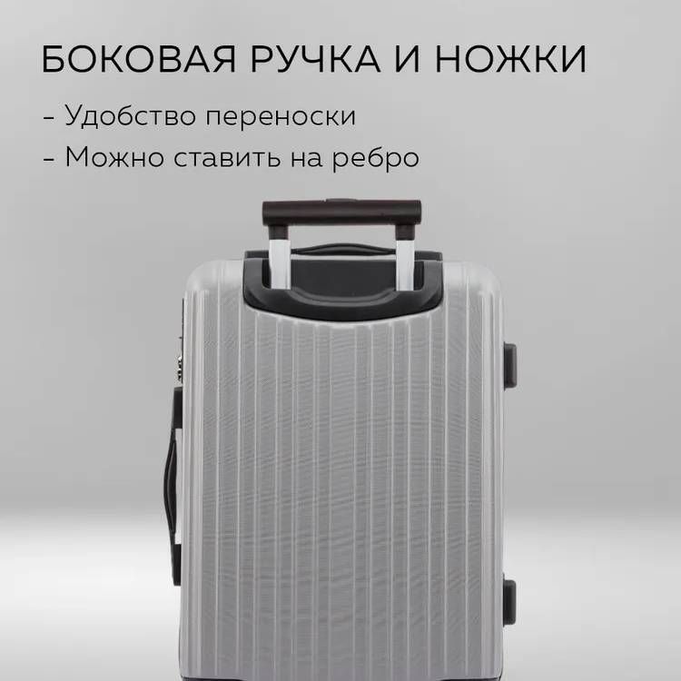 Дополнительные элементы комфорта включают боковые ножки, защищающие корпус от царапин при размещении чемодана на боковой поверхности. Телескопическая ручка с фиксатором позволяет настроить оптимальную высоту для транспортировки, а дополнительные боковые ручки обеспечивают удобство при переноске чемодана в руках.